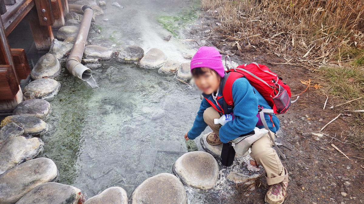 バス停のすぐそば、遊歩道の下に湯船(?)があったけど周りに鹿のフンがいっぱい!