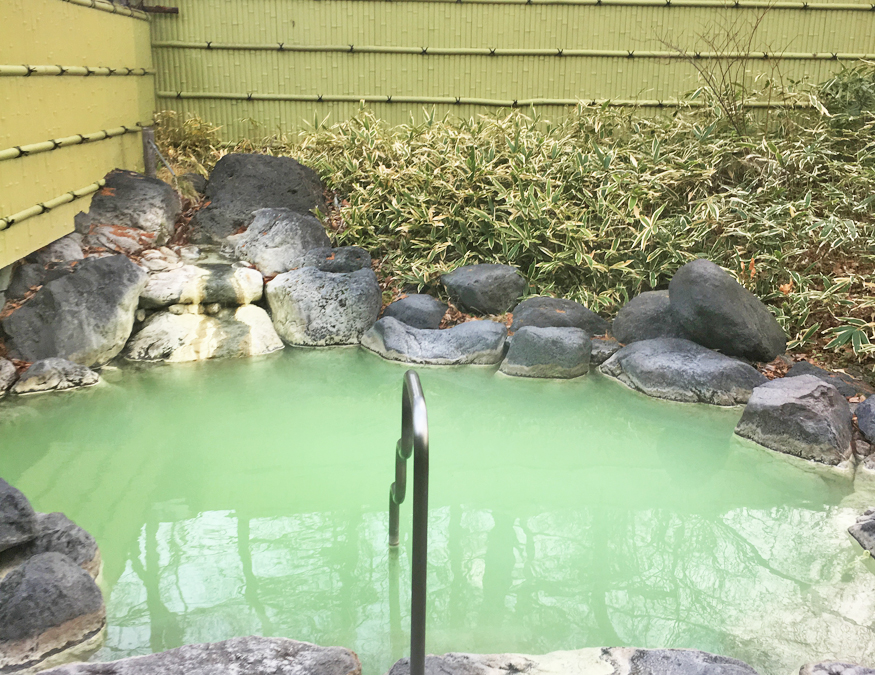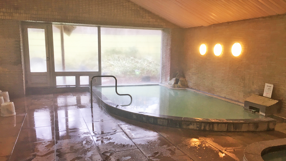 露天風呂の色は今回はエメラルドグリーンで硫黄の匂いはキツめ。前回は透明で青っぽい色のお湯でしたが、毎回お湯の色や匂いが違うのが不思議ですな~。露天風呂の湯温は高めですが刺すような熱さではなく、何というか柔らかい感じの熱さで長らく浸かっていられます。料金は大人1,000円、子供500円、未就学児無料。