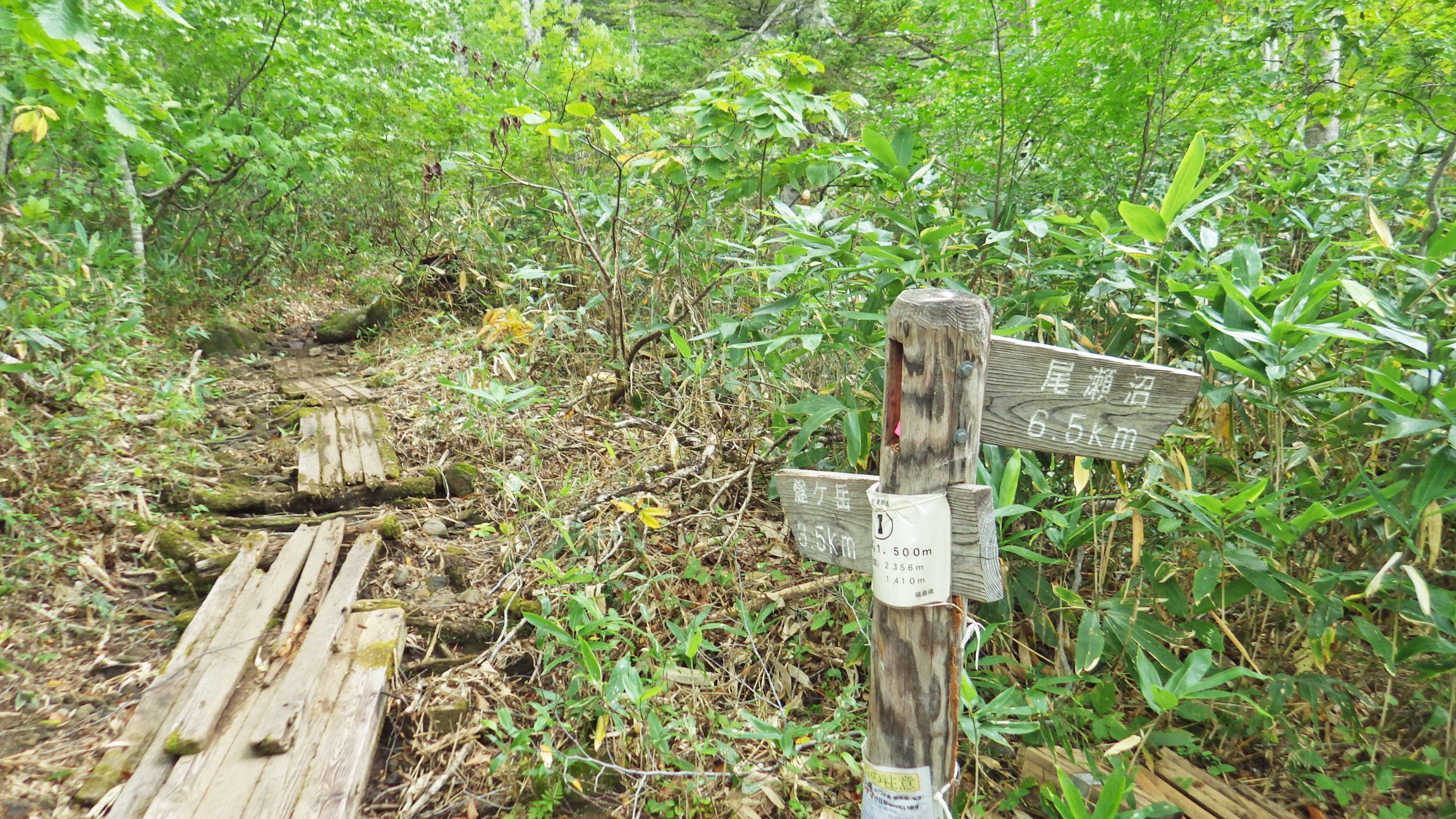燧ヶ岳・見晴新道への分岐。このルートはぬかるみがひどいらしいです。知らんけど。我々は尾瀬沼方面へ~。