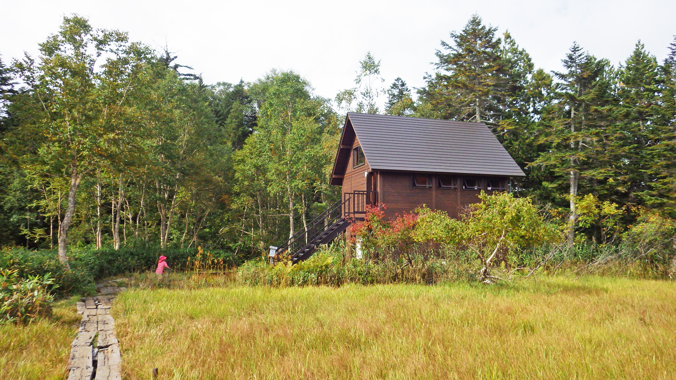 尾瀬沼ビジターセンターから20分ほどで今度は尾瀬沼山荘に到着。ここから三平峠に向かっての登り。