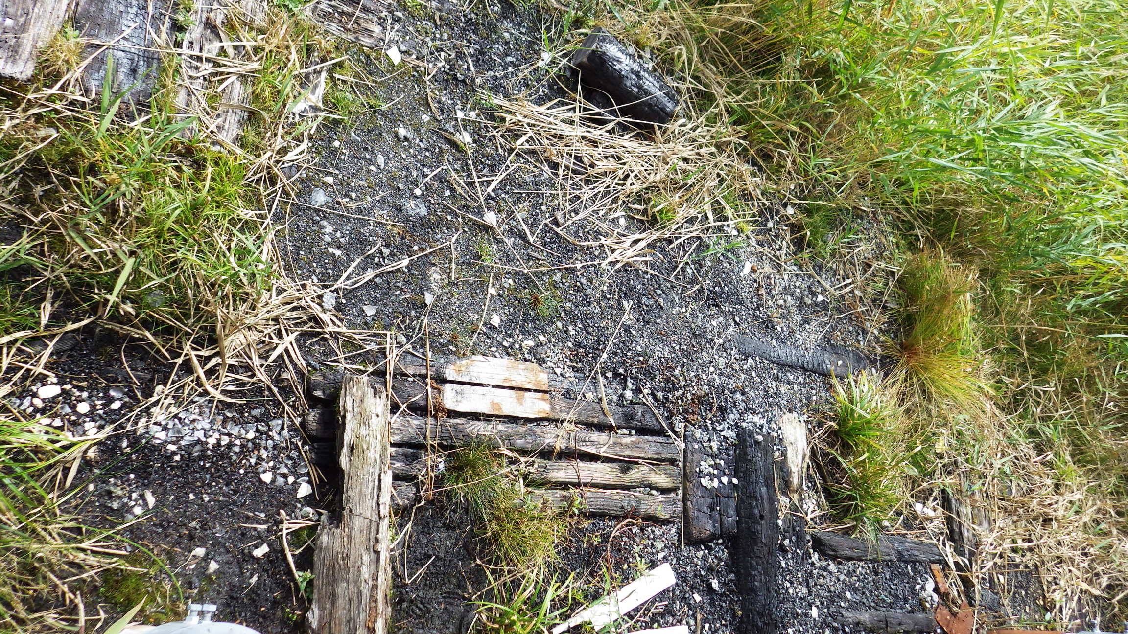 土台の方に目をやると焼け焦げた木材が。けっこう広い範囲で焼けたようです。