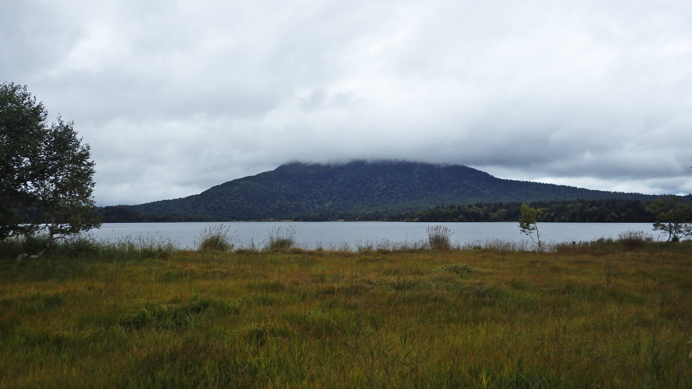 燧ヶ岳の頂上は雲の中へ。晴れ間は消えてポツポツと降ってきた。