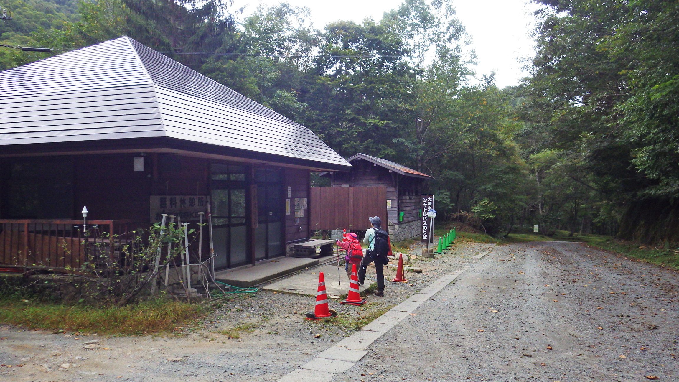 三平橋からすぐの所にある一ノ瀬休憩所に到着@13:30。昔ここへ来た時は売店があったような気が…。今はトイレと休憩所だけです。ここから大清水まで1時間かけて歩いてもいいですが、今回の歩きはここで終了します。30分おきに乗合バス(ハイエースの大きいやつ)が大清水まで往復しているのでそれまで休憩。