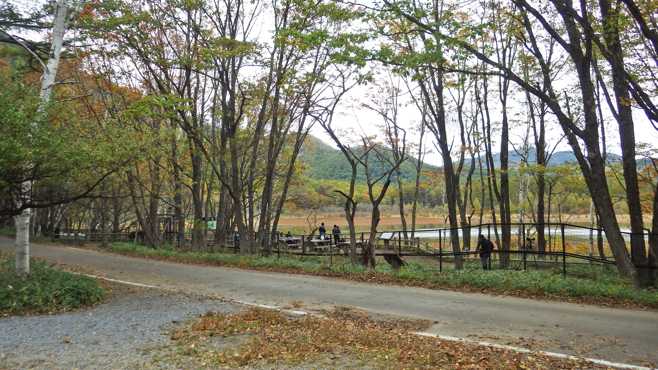 この休憩所から少し北側の歩道から最も美しい小田代ヶ原を見られるかも。大きなカメラを担いだ人達は皆そっちから写真を撮っていました。ここでバスが来るまでコーヒー休憩。
