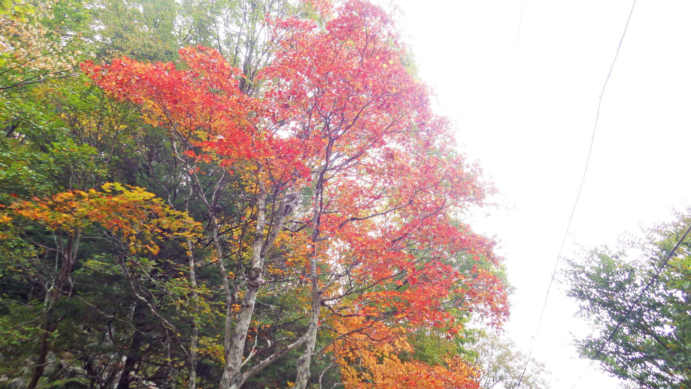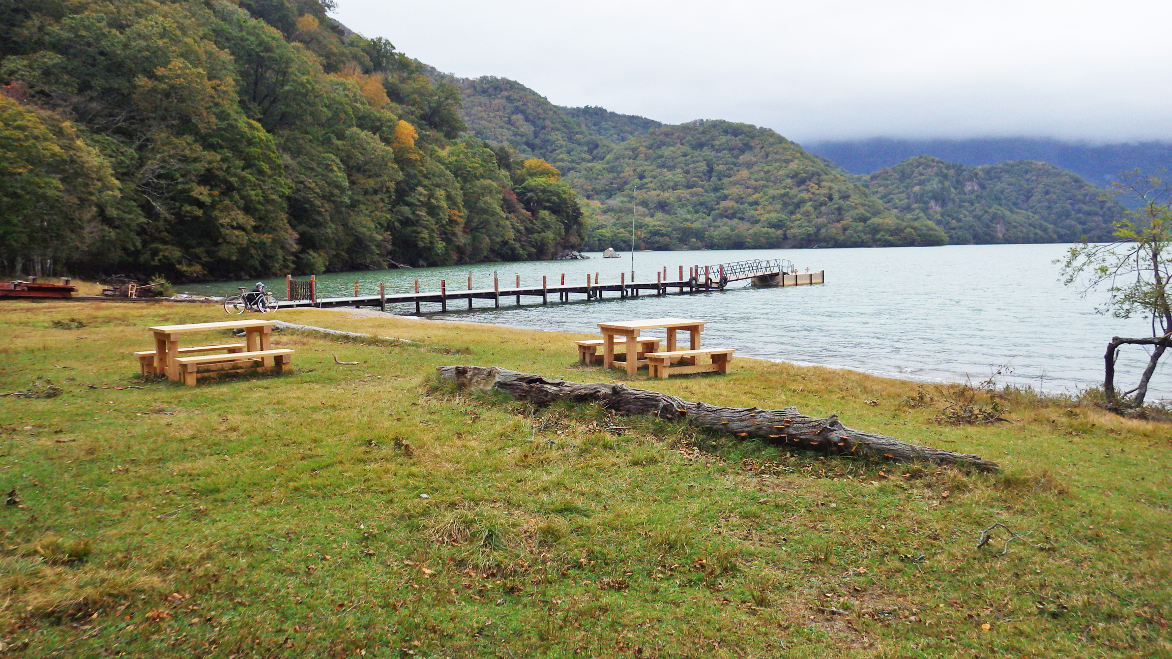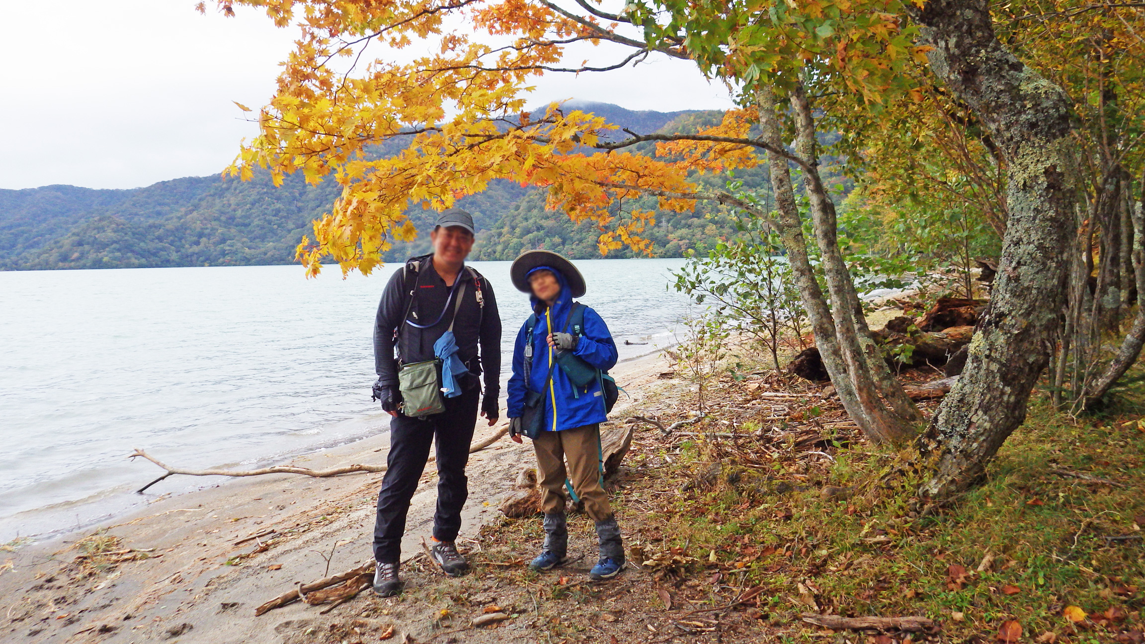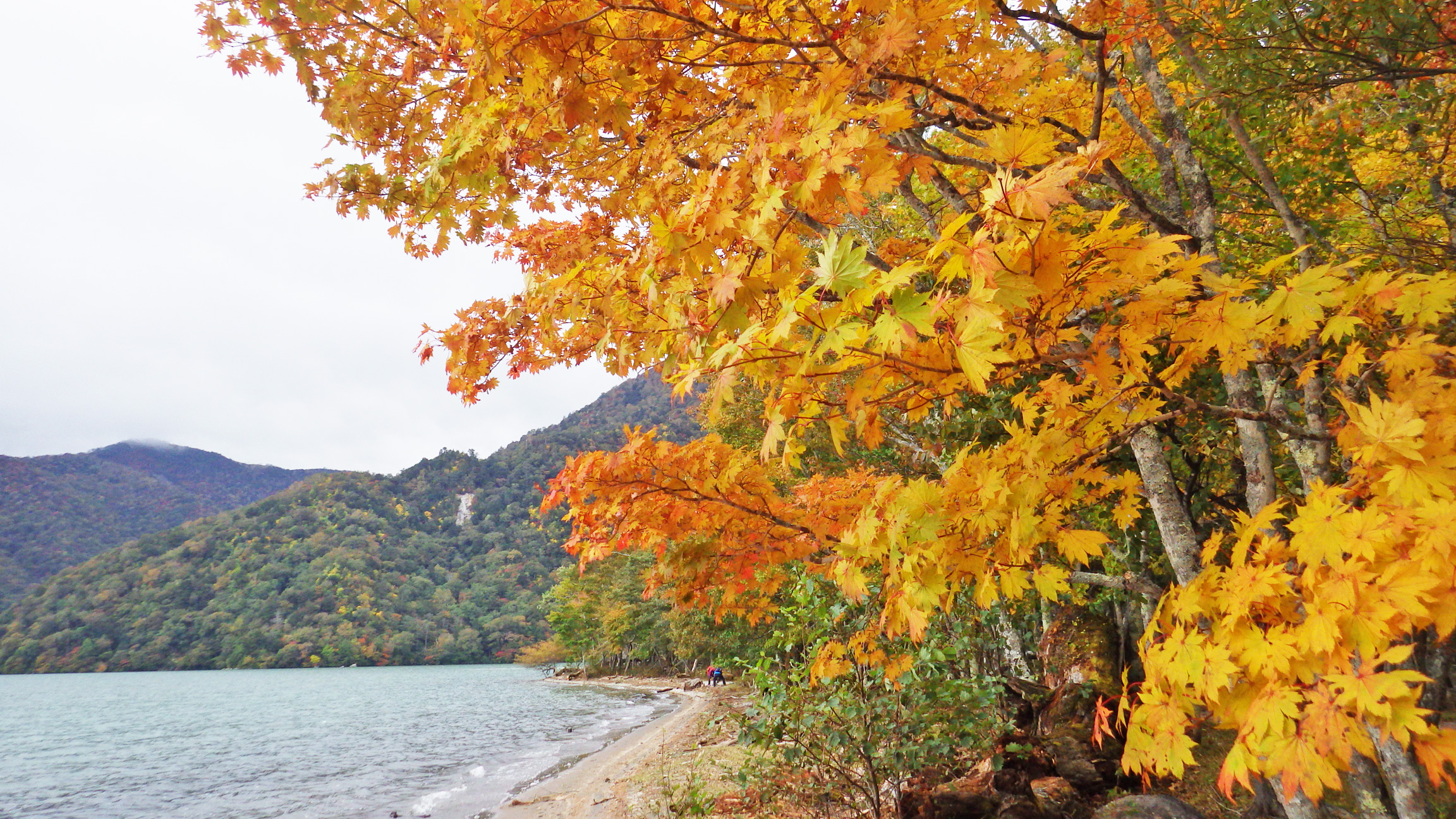 晴れていれば青空と紅葉と青い湖面の組み合わせでかなり良い写真を撮れたはず。
