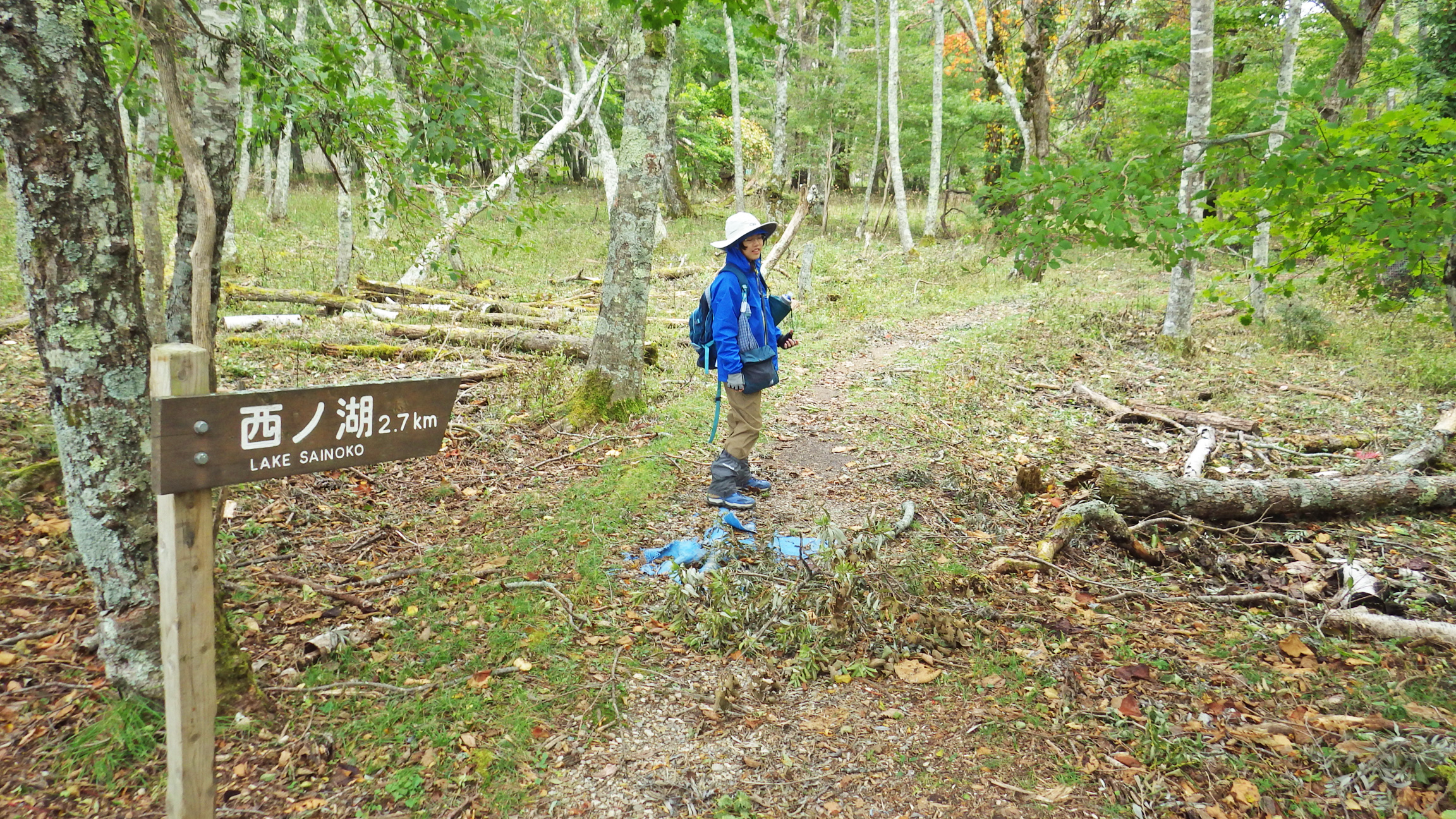 台風通過直後なのであちこち太い枝が落ちています。こういう時は頭上注意。