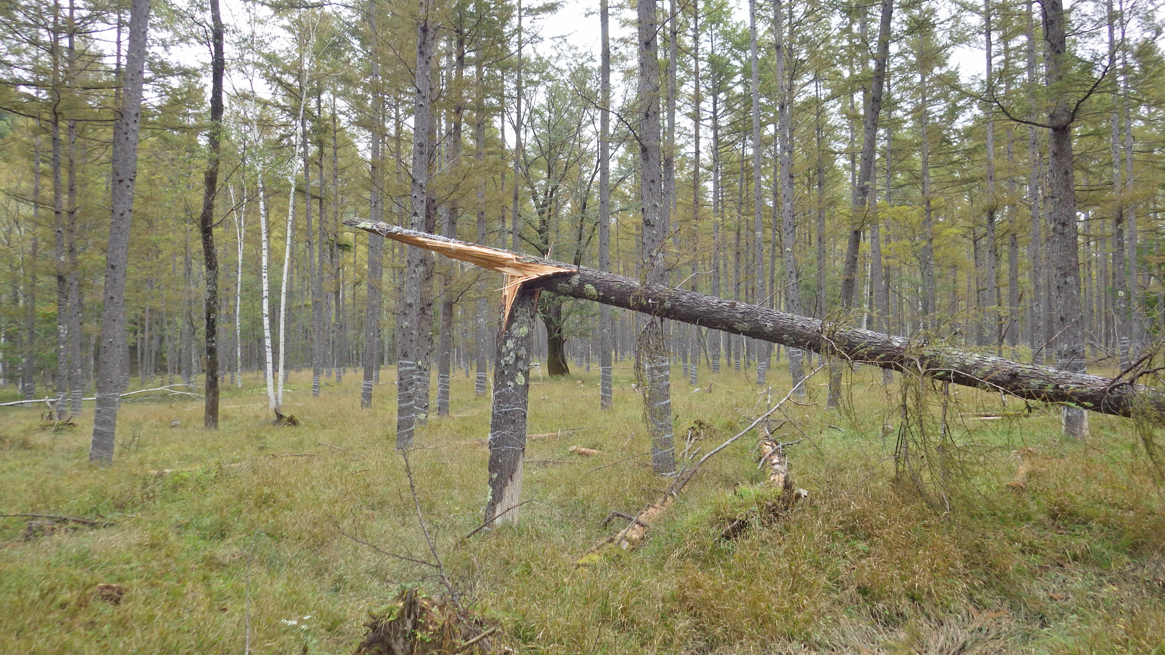 前日に日光湯元ビジターセンターや赤沼自然情報センターのサイトを見て今回のルートを決定しました。切込湖・刈込湖は倒木で通行止め、戦場ヶ原の湯川沿いの木道も通行止めになっていたものの、小田代ヶ原周回ルートは通行可となっていたのでこちらへ。