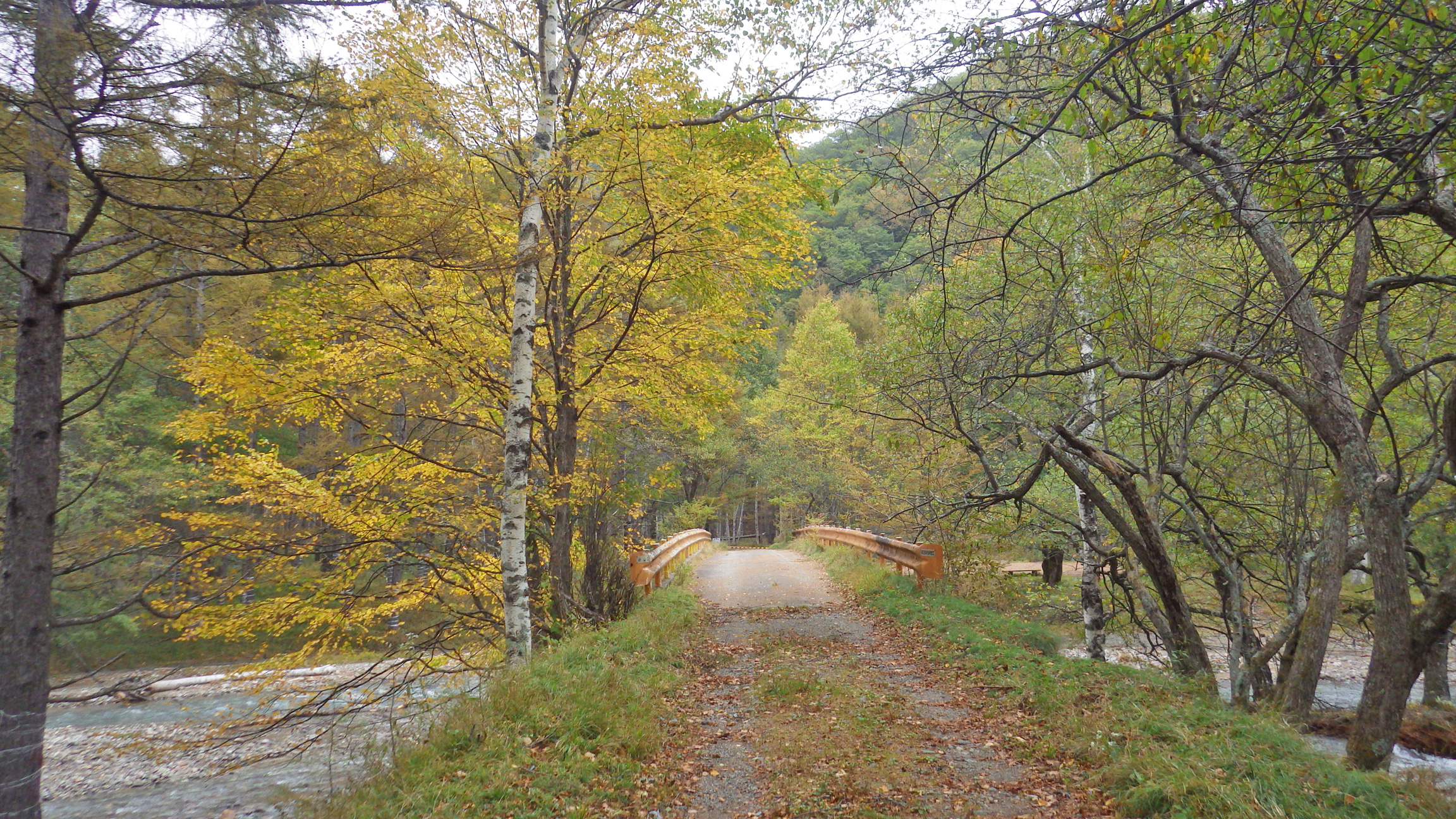 橋を渡って外山沢川の右岸へ。こちらの岸辺は紅葉がきれいになりつつある感じ。